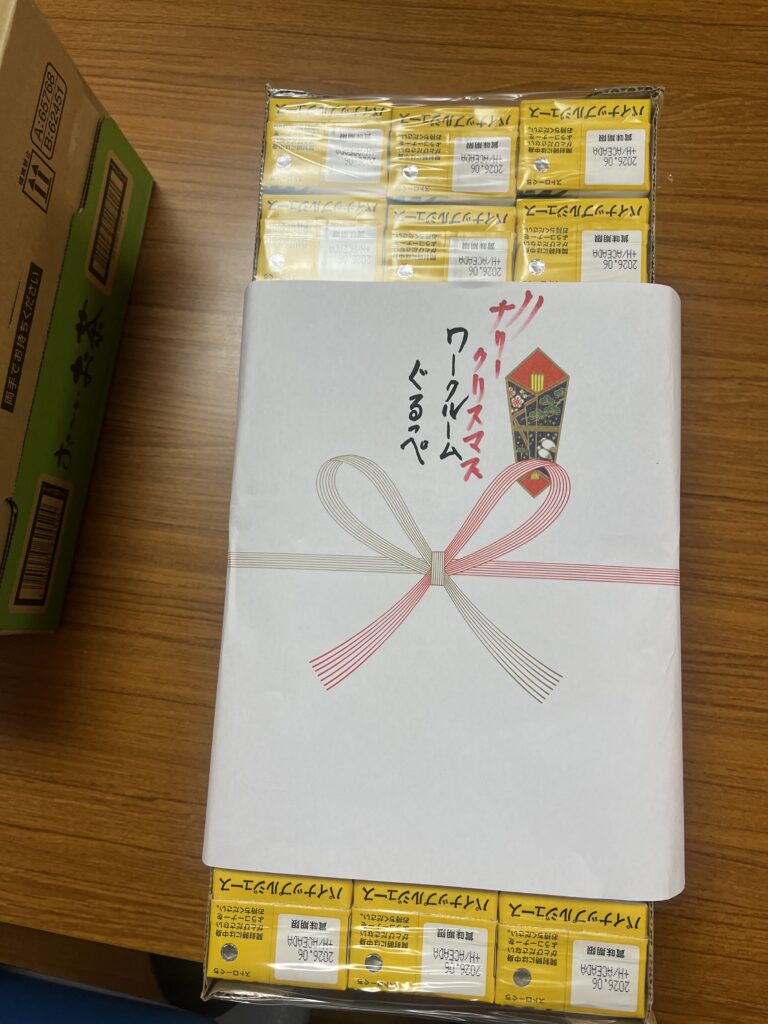 今回はペットボトルのお茶やジュースの他、カレンダーを贈呈してくださいました。カレンダーは利用者さんに大人気でした😊